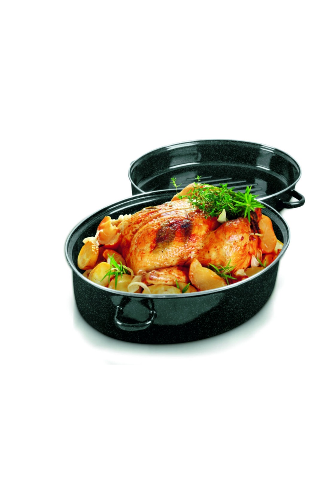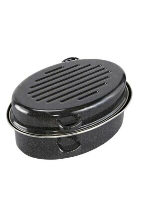 EMAYELİ TENÇERE SİYAH BEYAZ KIRCILI 38+26+18CM 0,8 KALINLIK